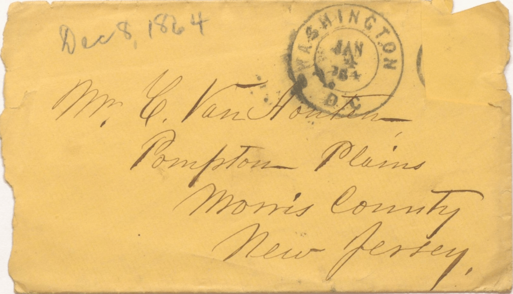 [Note: This letter is in the Cornelius Van Houten Correspondence, Manuscript Division, Library of Congress, but it has not been previously transcribed.]
